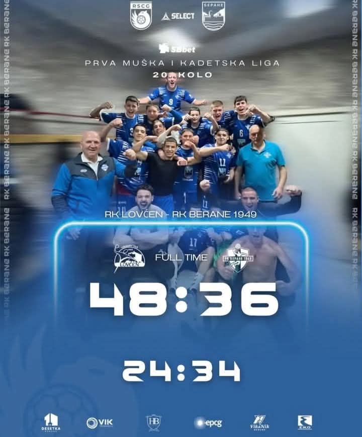 Ipak, kadeti Berana donijeli su razlog za zadovoljstvo. U 20. kolu Kadetske rukometne lige ubjedljivo su savladali Lovćen na Cetinju rezultatom 34:24. Cijela ekipa odigrala je veoma disciplinovano, a najefikasniji je bio Pavle Vučević sa sedam pogodaka.