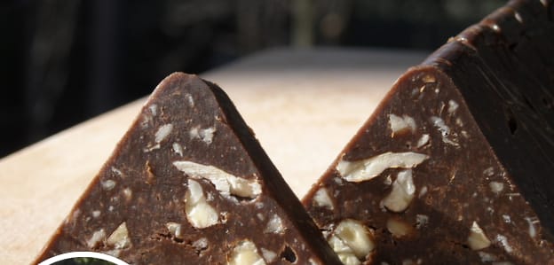 Otopljenu čokoladu izmiješajte sa medom. Dodajte sjeckane bademe i promiješajte pa sipajte u kalup obložen vakum folijom i ohladite.