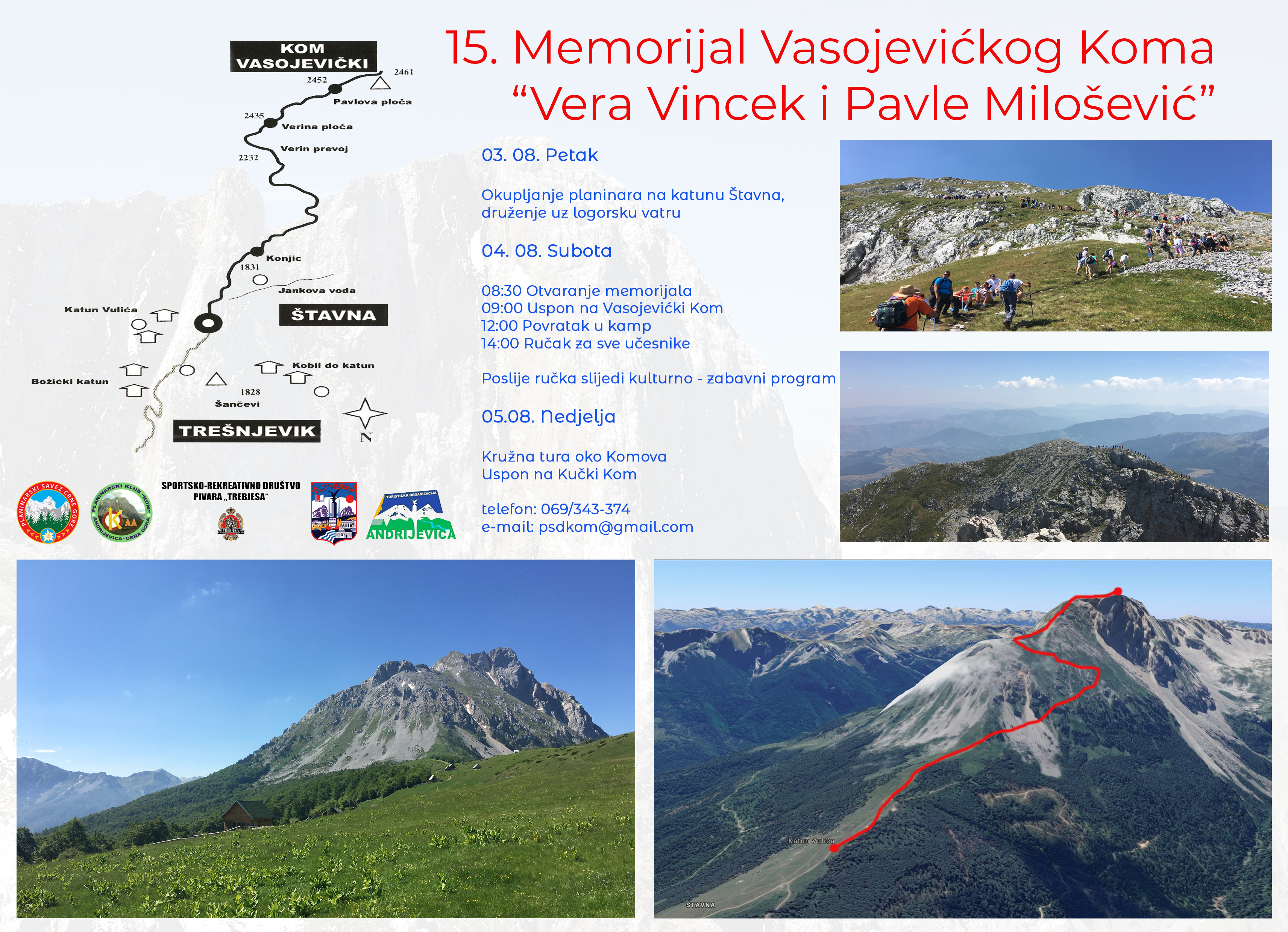 Memorijal Vasojevićkog Koma “Vera Vincek-Pavle Milošević” 15-ti po redu u organizaciji Planinarskog kluba “Kom” održaće se u periodu od trećeg do petog avgusta 2018. godine na katunu Štavna.