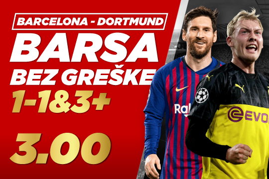 Prvi meč u Dortmundu nije opravdao očekivanja i završen je nepopularnim rezultatom 0:0. Sada se pita Barselona, a i želi pobjedu u ovom meču. Igra 1&3+ po kvoti 1.96 u Meridianu zvuči dobitno, a može se i odigrati 1-1&3+ po kvoti 2.88.