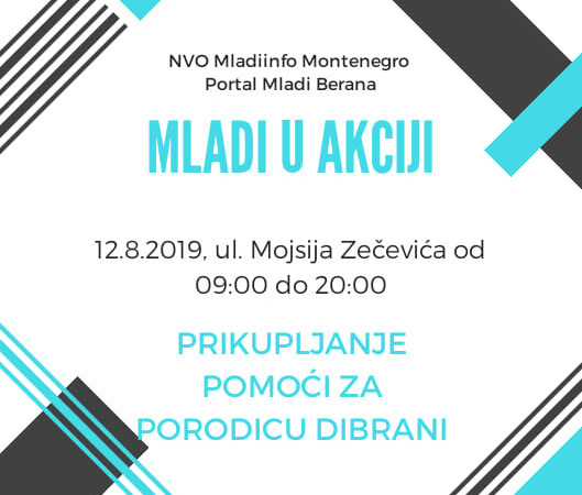 Povodom 12. avgusta, Dana mladih NVO Mladiinfo Montenegro i portal Mladi Berana organizuju humanitarnu akciju prikupljanja pomoći za porodicu Dibrani iz Berana.