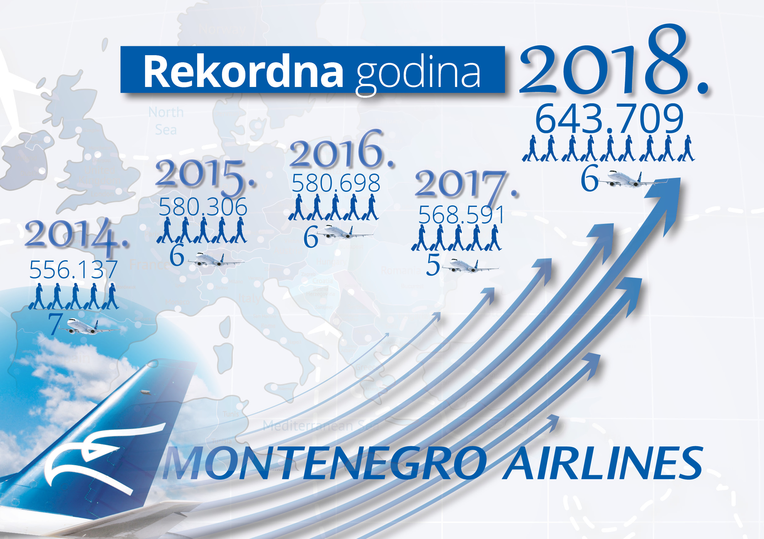 “Gotovo na svim tržištima je ostvaren porast u broju prevezenih putnika od šest odsto do 13 odsto. Izuzetak je njemačko tržište, na kojem je prije svega zbog otvaranja linija prema Minhenu i Lajpcigu, ostvaren porast u broju prevezenih putnika od fantastičnih 75 odsto”, navodi se u saopštenju. Kompanija je u ovoj godini prihodovala više od 70 miliona eura. Od toga je 15 miliona eura ostalo u Crnoj Gori kroz uplate ličnih dohodaka, poreza i doprinosa na lična primanja, obaveza prema Aerodromima Crne Gore i plaćanje usluga u privredi van turizma.