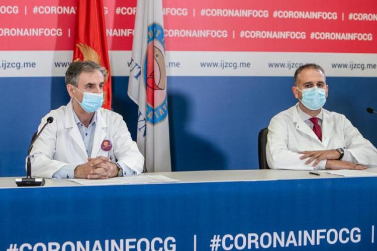 Hospitalizovano je 126 ljudi. U KCCG je 20, Baru 20, Berane 32, Nikšiću 35 , Brezoviku četiri, Kodri pet, Pljevljima 10. Od 126 sedam je na mehaničkoj ventilaciji od čega su dva u KCCG na neinvazivnom, tri u Beranama na neinvazivnom i jedan u Baru na respiratru. 79 je pozitivnih zdravstvenih radnika i njih 24 u samoizolaciji.