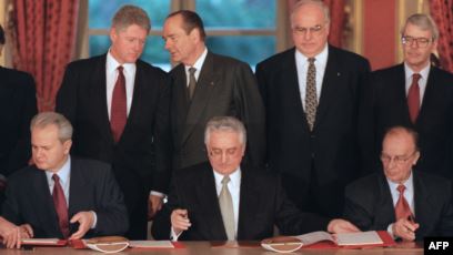 Šef jugoslovenske delegacije na mirovnim pregovorima u Parizu predsjednik Srbije Slobodan Milošević, predsjednik Hrvatske Franjo Tuđman i lider bosanskih muslimana Alija Izetbegović potpisali mirovni sporazum o Bosni i Hercegovini na današnji dan, 14. decembra 1995. godine.