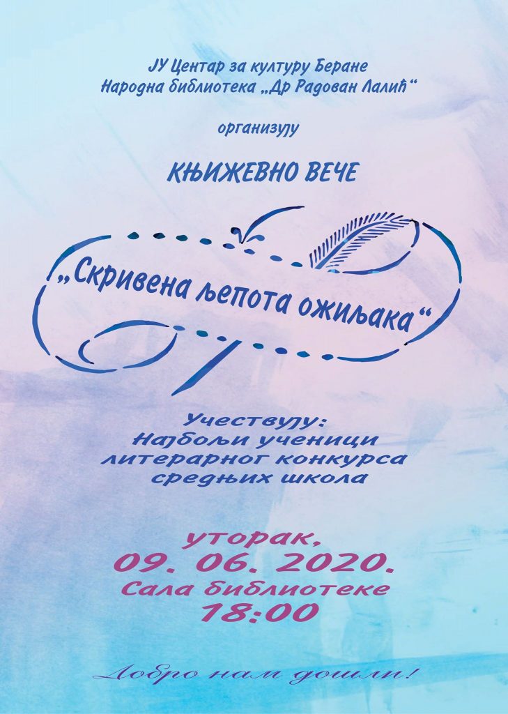Tim povodom danas će, sa početkom u 18 časova, u prostorijama biblioteke biti održano književno veče na kojem će deset najboljih radova, koje izabere stručni žiri, pročitati sami učenici, a prva tri rada će biti nagrađena.
