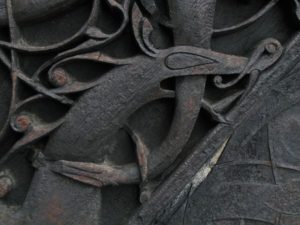 Slika četvoronožne životinje (pretpostavlja se lava) u borbi sa zmijom izrezbarena na vratima crkve klasičan je primjer preplitanja vikinške tradicije i hrišćanske simbolike. Jedno je sigurno, predstavlja borbu dobra i zla, vjerovatno Hrista i Satane.