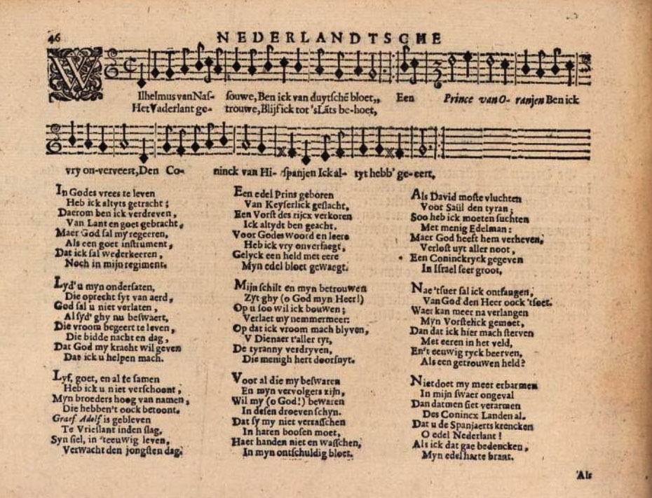 Ova himna datira iz 1572. godine i smatra se himnom sa najstarijom melodijom. Takođe se smatra da je melodija holandske himne pozamljena iz francuske pesme Autre chanson de la ville de Chartres assiégée par le prince de Condé, a da je poreklo reči himne nepoznato.