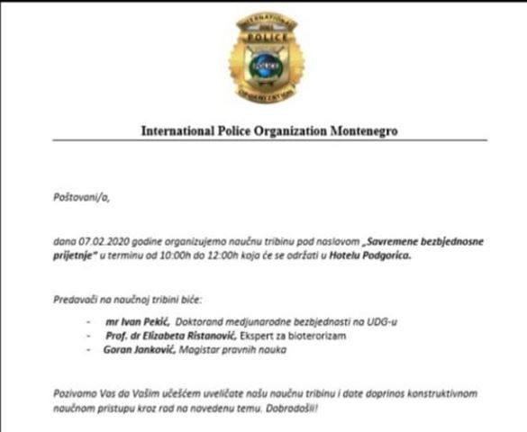 Ova tribina održava se u organizaciji Internacionalne “Policijske Organizacije Crna Gora”.