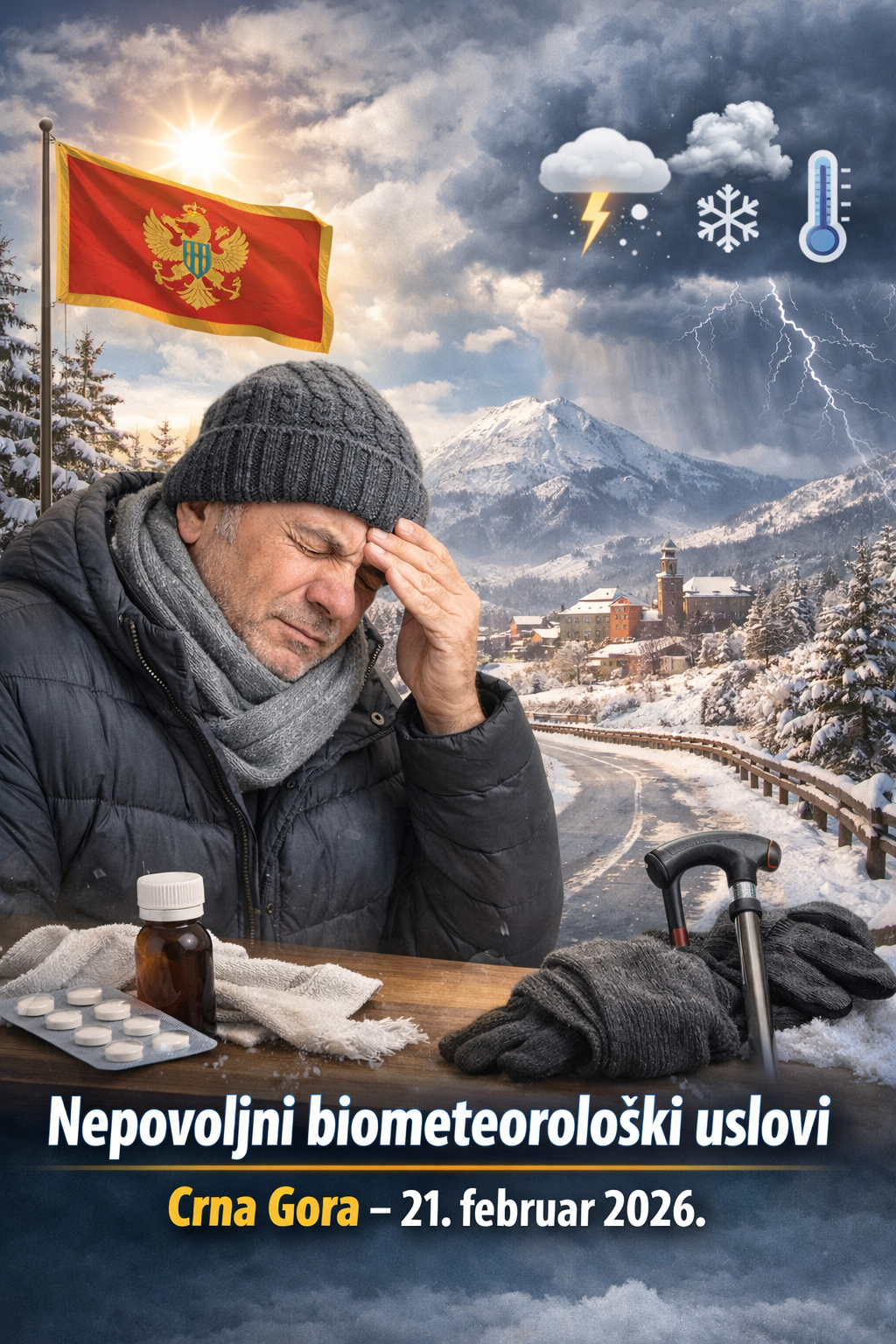 Preporučuje se toplije oblačenje, izbjegavanje većih napora i redovna terapija za hronične bolesnike. Tokom dana očekuje se blago poboljšanje biometeoroloških uslova.