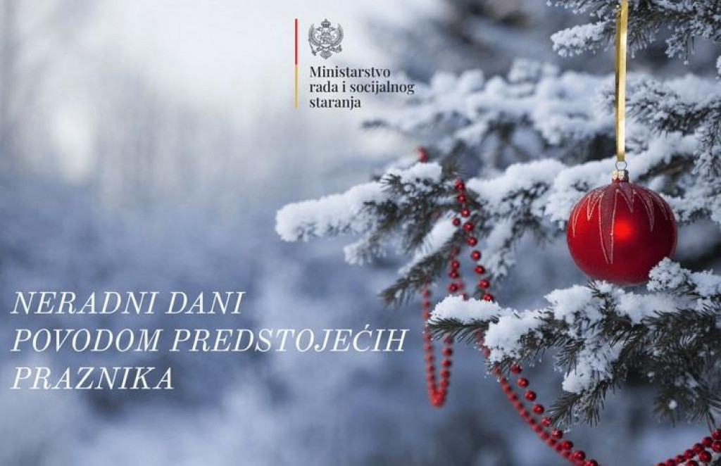 Neradni dani za vjernike rimokatoličke vjeroispovjesti, radi svetkovanja Badnjeg dana i Božića, biće nedjelja, ponedjeljak i utorak, saopšteno je iz Ministarstva rada i socijalnog staranja.