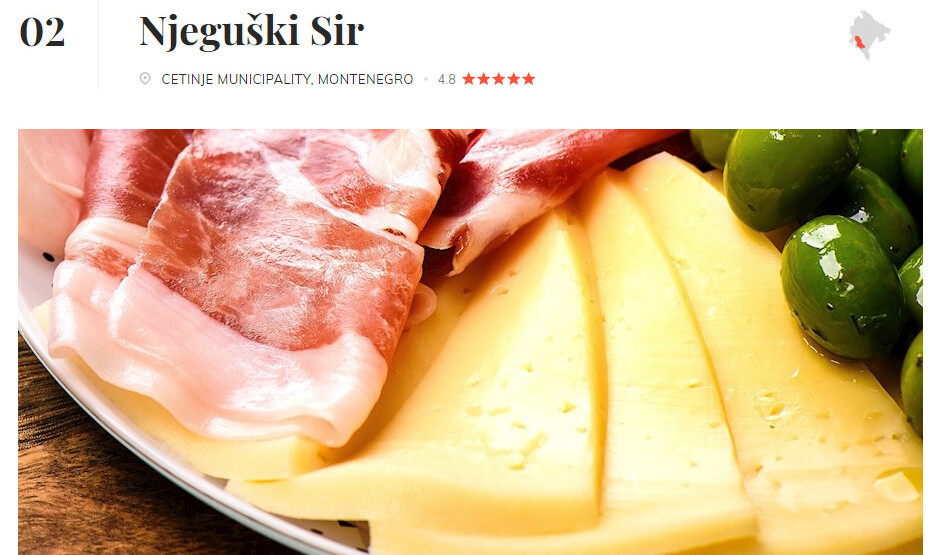 Njeguški sir, crnogorski specijalitet, našao se u samom vrhu, na 2. mjestu.