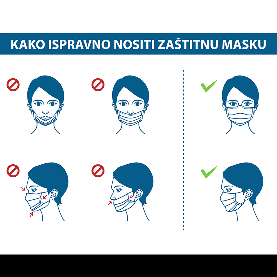 “Zaštitna maska MORA pokrivati i usta i nos! Samo tako je ostvarena njena zaštitna funkcija. Čuvajte svoje zdravlje i zdravlje drugih!”, navode it tog tijela.