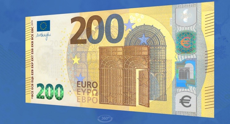 “Na vrhu srebrnaste trake nalazi se hologram sa satelitima, odnosno mali simboli euraa koji kruže oko brojke i postaju jasniji kada se novčanica osvijetli. Na srebrnastoj traci vidi se i Evropin portret, arhitektonski motiv i velik simbol euraa. Na novim novčanicama od 100 i 200 eura unaprijeđena je i smaragdna brojka”, objašnjeno je u saopštenju.