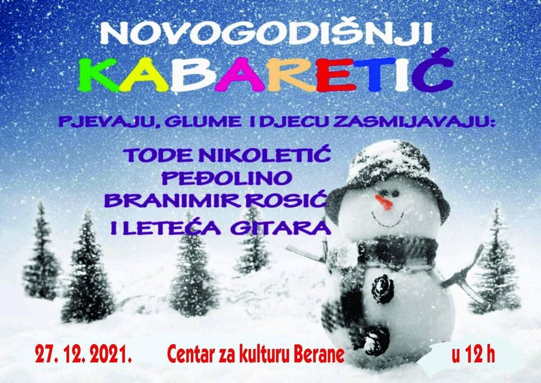 Novogodišnji kabaretić gostovaće 27-og decembra u Centru kulture Berane u 12 časova.