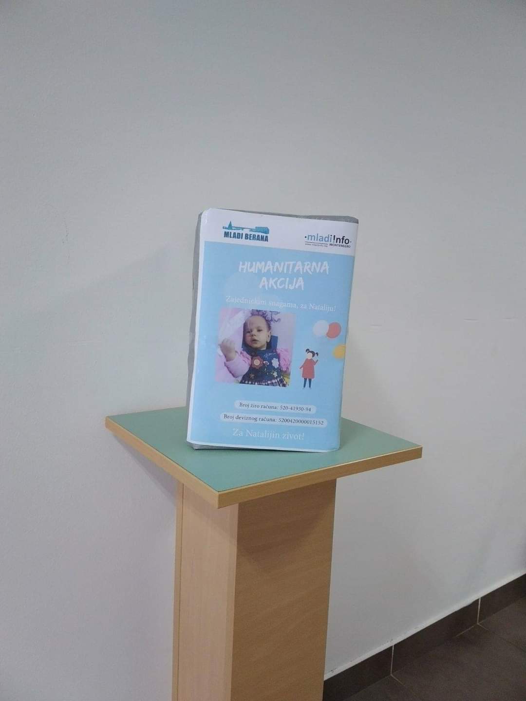 NVO Mladiinfo Montenegro postavila je kutije za donacije za Nataliju Ljumović u Beranama. Akciju sprovodi sa portalom Mladi Berana, a kutije su postavljene u cilju skupljanja novčane pomoći i to u lokalima: Marx, Pab štab, Pab tag, Lounge bar Štrafta i Code-u, kao i u učeničkom studentskom domu. Donacije će se prikupljati do ponedeljka (1.02.2021.).