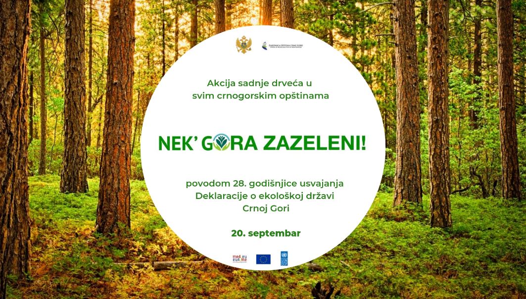 Generalni sekretarijat Vlade Crne Gore i Zajednica opština Crne Gore, povodom obilježavanja 28 godina od usvajanja Deklaracije o ekološkoj državi Crnoj Gori, pokreću akciju pod nazivom „Nek’ gora zazeleni!“.