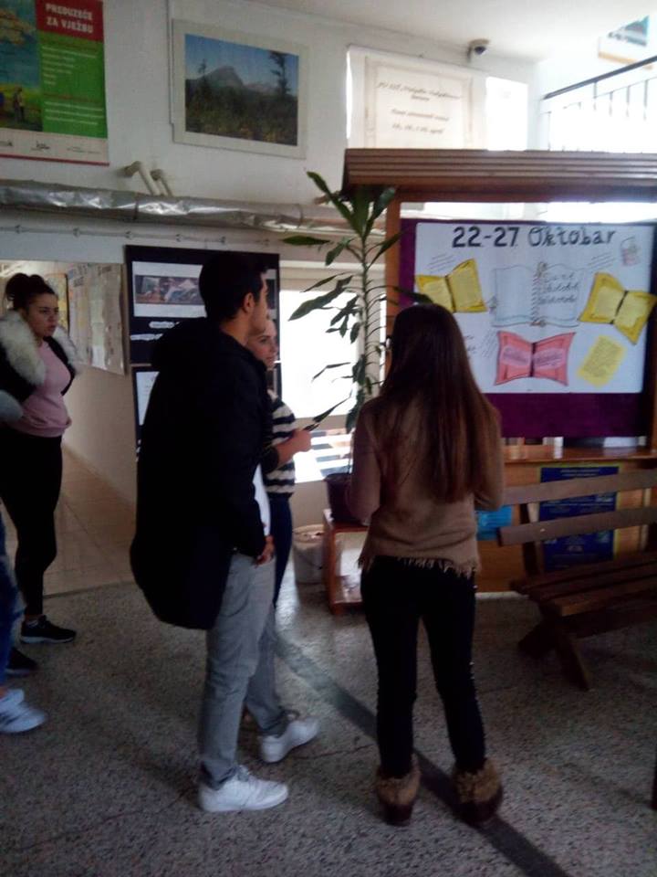 Tokom čitave nedjelje u školskoj biblioteci bili organizovane razne aktivnosti: izložba novih knjiga, literarni kutak, recitatorski čas.