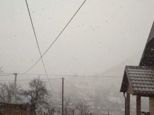 Vjetar intenziteta 17 kilometara na čas njiše grane i raznosi pahulje.