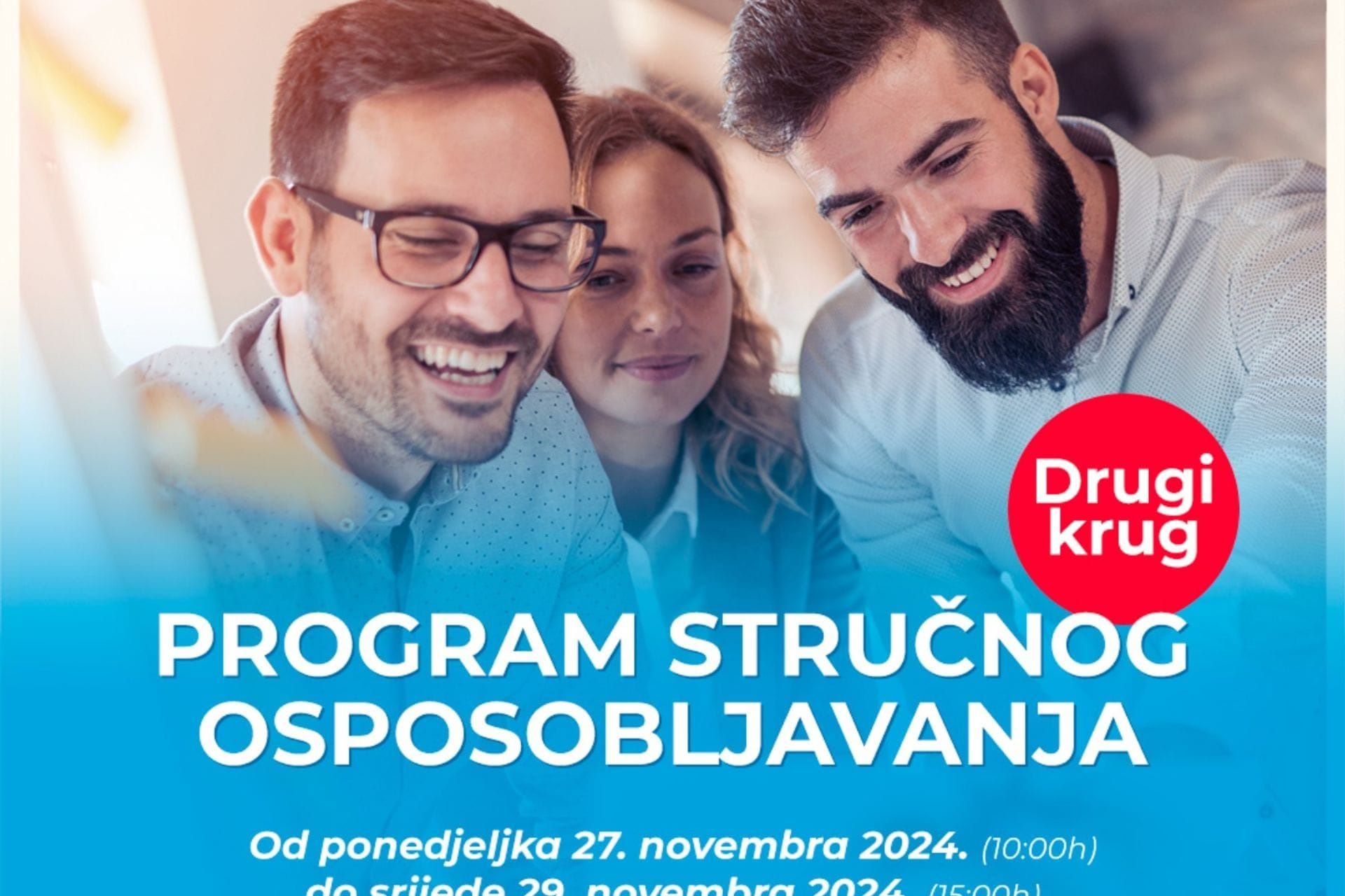 Korisnici Programa stručnog osposobljavanja lica sa stečenim visokim obrazovanjem, koji su nakon prvog kruga ostali bez mjesta za stručno osposobljavanje, imaju mogućnost da kroz drugi krug Programa, koji će biti u periodu od ponedeljka 27. novembra 2023. godine (10 časova) do srijede 29. novembra 2023. godine (15 časova) biraju nekog od preostalih poslodavaca preko portala eUprave.