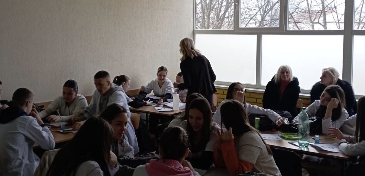 Nastavnica Nataša Radusinović je dana 15. februara 2024. godine u odjeljenju II-2 održala ugledni čas iz engleskog jezika na temu “What are germs?”, u korelaciji sa mikrobiologijom. Čas je bio izuzetno interesantan i interaktivan, pružajući učenicima mogućnost da nauče stručni vokabular kroz raznovrsne aktivnosti uz primjenu savremene tehnologije.