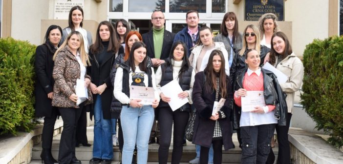 Ispred Opštine Berane, odnosno Sekretarijata za opštu upravu i društvene djelatnosti radionici su prisustvovale Mirjana Babić i Ana Došljak.