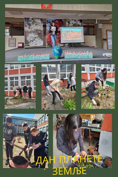 Kroz realizaciju nastavnih i vannastavnih aktivnosti učenici naše škole su na kreativan način obilježili ovaj datum. Članovi eko škole i eko sekcije uredili su atrijum i dvorište škole, posadili cvijeće na ulazu u školu i u atrijumu. Cvijeće je donirala majka našeg učenika Matije Vujovića, te joj se ovom prilikom zahvaljujemo. Članovi ekološke sekcije od petog do devetog razreda izradili su panoe i zalijepili ih u školskom hodniku kako bi edukovali druge učenike o značaju Dana planete Zemlje.