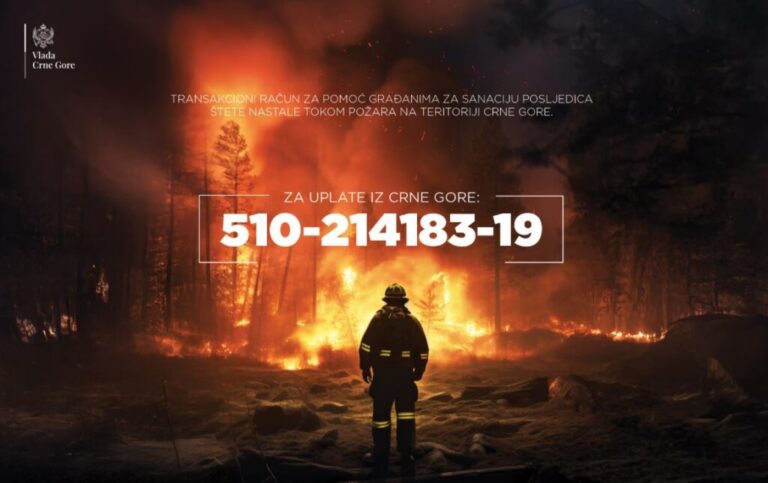 Vlada Crne Gore je, u skladu sa Informacijom usvojenom na sjednici, otvorila transakcione račune za pomoć građanima za sanaciju posljedica štete nastale tokom požara na teritoriji Crne Gore.