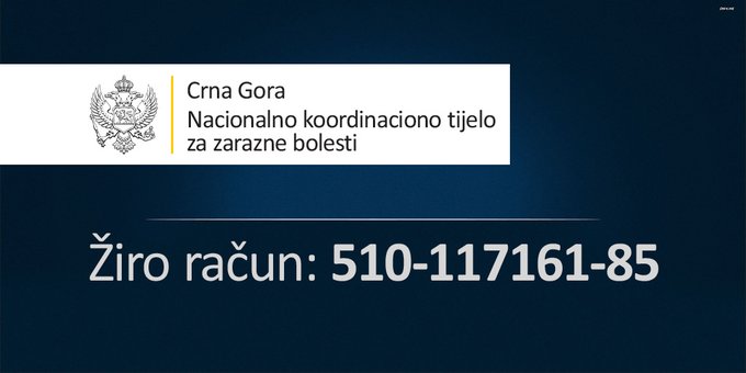 Nacionalno koordinaciono tijelo za zarazne bolesti otvorilo je žiro račun za prikupljanje novca za borbu protiv kovida 19, saopšteno je iz Vlade Crne Gore. Broj žiro računa je 510-117161-85