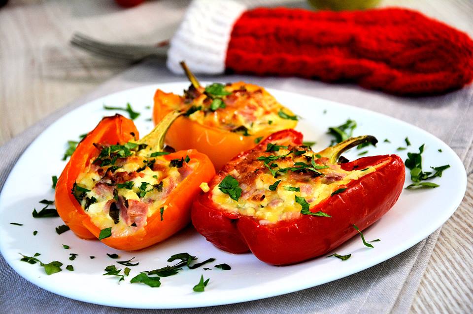Za fil: sjedinite sir, krupno rendani trapist, umućena jaja, iseckanu šunku i peršun. Paprike presjecite na pola i očistite od sjemenki.