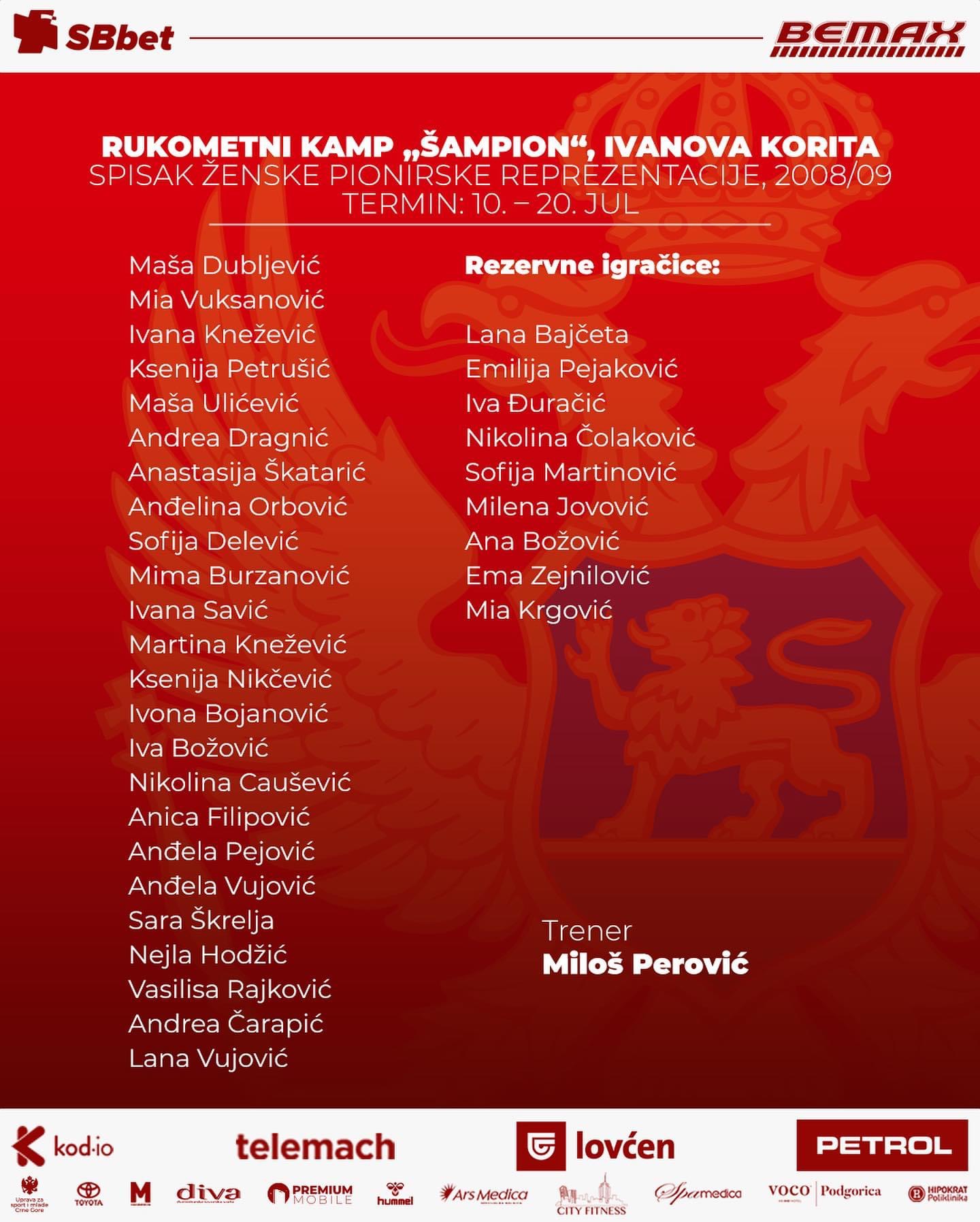 Isti broj igračica okupiće i treneri muške pionirske reprezentacije Miloš Vulićević i Vuk Kaluđerović.