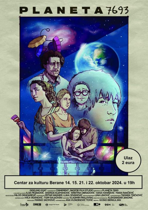 Tamo otkriva svoje „super moći“ i sklapa posebno prijateljstvo sa misterioznom djevojčicom. Kroz nježan spoj fantazije i iskrene emocije, „Planeta 7693“ donosi dirljivu priču o snazi mašte i ljubavi. Glavne uloge tumače: Ilija Pejaković, Kristina Obradović, Andrija Kuzmanović, Hana Ivanišević i Mara Rakčević. U bioskopu Centra za kulturu, film će biti prikazan 14. 15. 21. i 22. oktobra u 19 časova. Ulaznice po cijeni od dva eura mogu se kupiti na dan projekcije od 8 do 10 časova u prostorijama Centra za kulturu i od 18 do 19 časova na biletarnici.