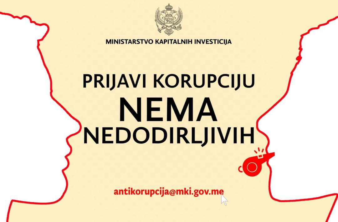 Ministarstvo kapitalnih investicija pokrenulo je ove sedmice novu kampanju pod sloganom: “Prijavi korupciju, nema nedodirljivih”.
