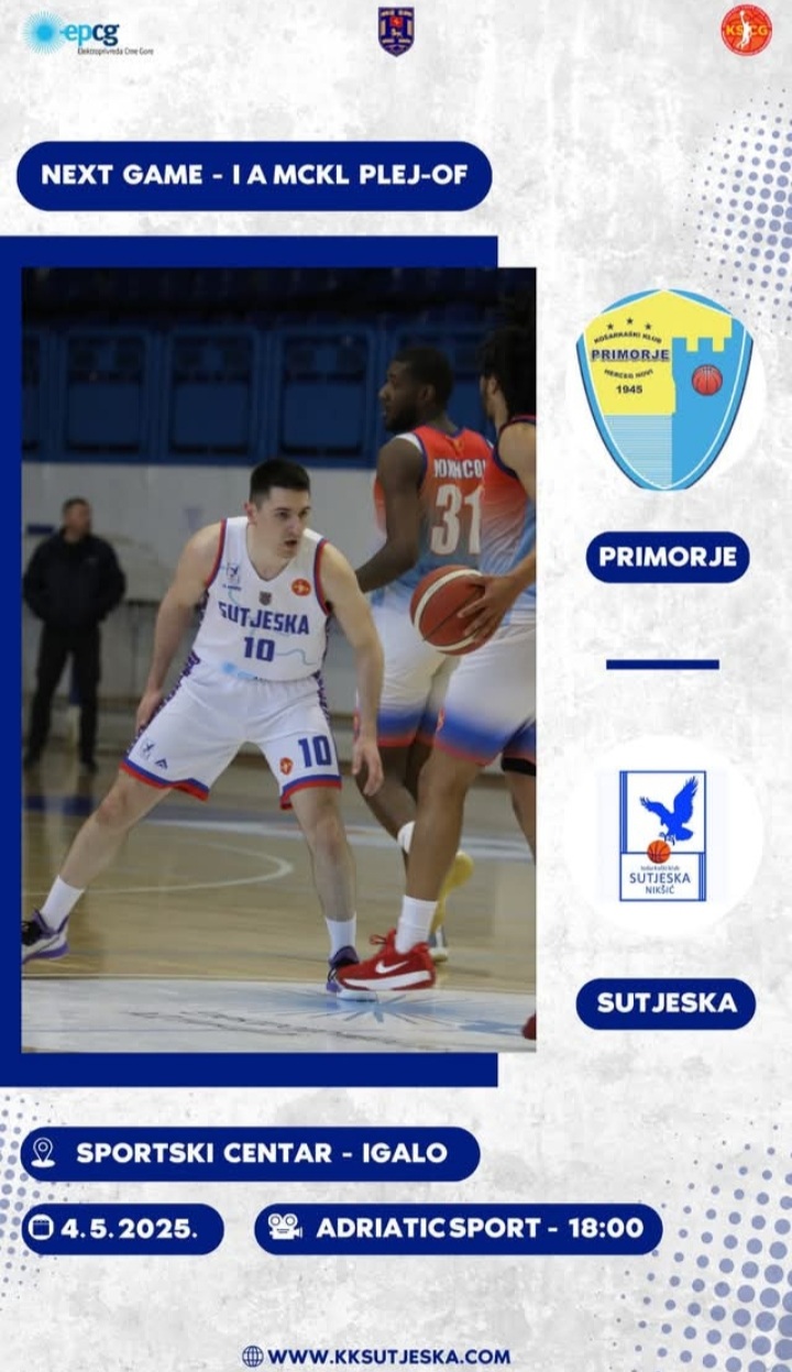 Počinje plej-of u Prvoj crnogorskoj košarkaškoj ligi, a Sutjeska će na startu doigravanja igrati protiv Primorja – prvi meč je sjutra (18h) u Herceg Novom, revanš u srijedu (18h) u Nikšiću.