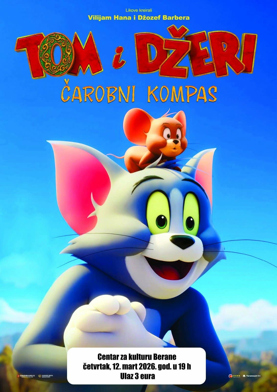 Animirani, sinhronizovani film “Tom i Džeri: Čarobni kompas” biće prikazan u Centru za kulturu Berane u četvrtak, 12. marta 2026. godine, sa početkom u 19 časova.