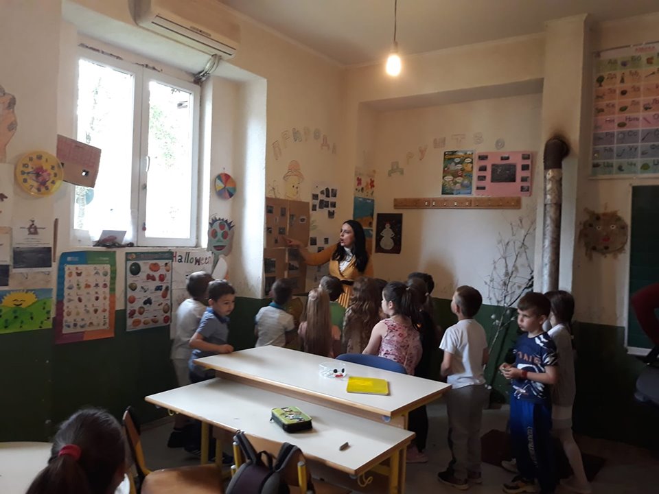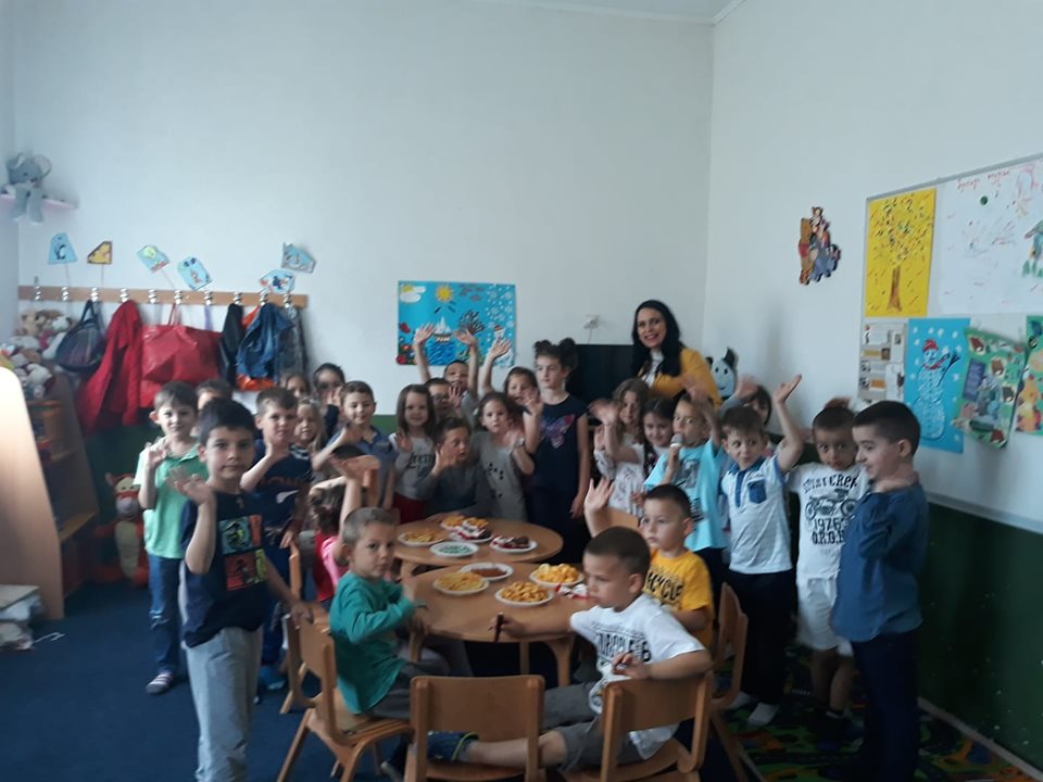 Direktor Svetolik Čukić, nastavno osoblje škole i djeca vrtića kao i djeca prvog razreda ljubazno su ugostili mališane i počasti li ih. Djeca koja će na jesen krenuti u prvi razred imala su ugodno druženje u školskim učionicama te su mogli osjetiti ugođaj školske klupe, a najveći utisak na njih je ostavila sala za fizičko vaspitanje.
