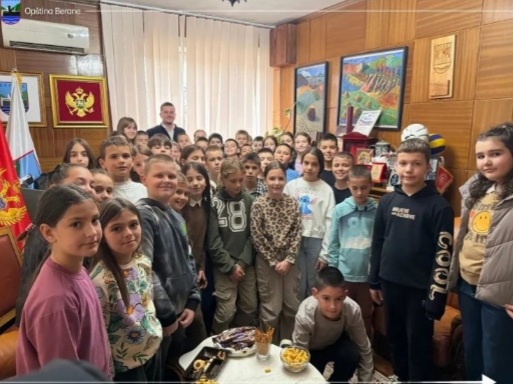 Učenici petog razreda Osnovne škole “Vuk Karadžić” posjetili su Opštinu Berane, gdje su ih ugostili predsjednik Đole Lutovac, predsjednica Skupštine Vida Ivanović i sekretar Skupštine Zoran Jelić.