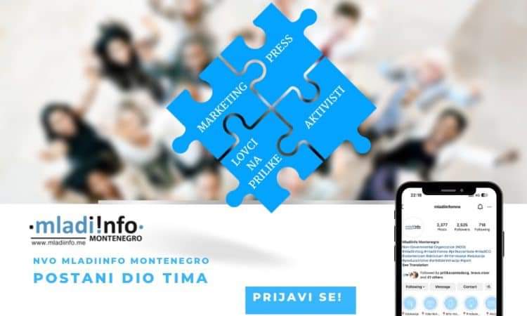 NVO Mladiinfo Montenegro (m!M) raspisuje poziv za volontere na koji se mogu prijaviti mladi iz cijele Crne Gore, u okviru jednog od timova: m!M marketing, m!M lovci na prilike, m!M aktivisti i m!M press tim. U nastavku pročitajte šta ovi timovi podrazumijevaju, i izaberite onaj koji vam najviše odgovara, ili više njih.