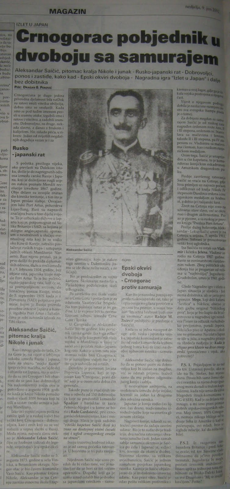U tom trenutku Lekso Saičić munjevitom brzinom, samo njemu svojstvenom, mahnu sabljom i posječe japanskog junaka. Čuo je urlik pored uveta, pa onda urnebesno “živeo” na ruskom. Čim je samuraj pao na zemlju, njegov konj odkasao je ka japanskoj vojsci. Ovom pobjedom nanijet je teški moralni poraz japanskoj vojsci.