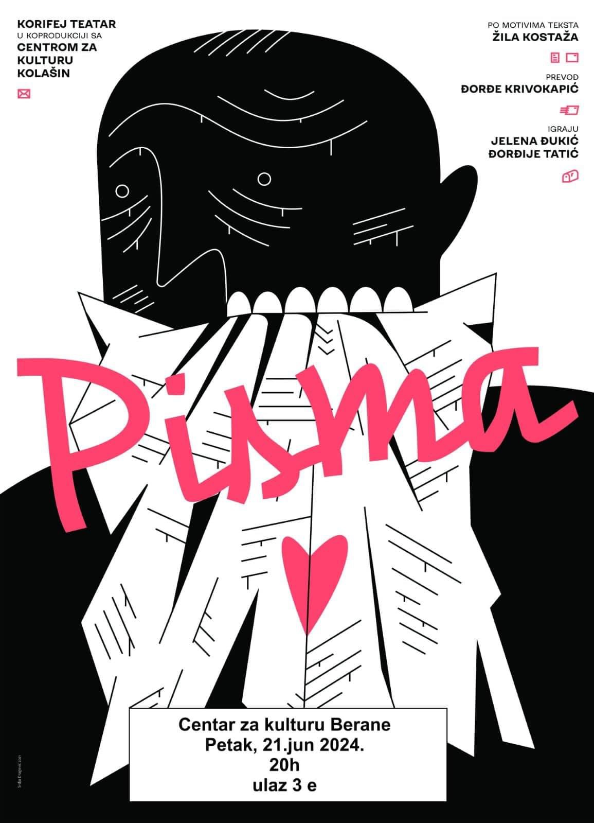 U petak, 21. juna 2024. godine, sa početkom u 20 časova, u sali Centra za kulturu biće izvedena pozorišna predstava „Pisma“.