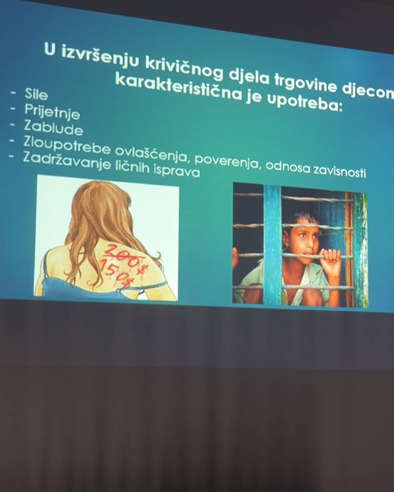 “Tokom predavanja ukazano je na to šta sve podrazumijeva trgovina ljudima, na koji način trgovci ljudima biraju, vrbuju i manipulišu žrtvama, ali i na to kako i kome se može obratiti za pomoć i kome prijaviti slučajeve trgovine ljudima”, navodi se.