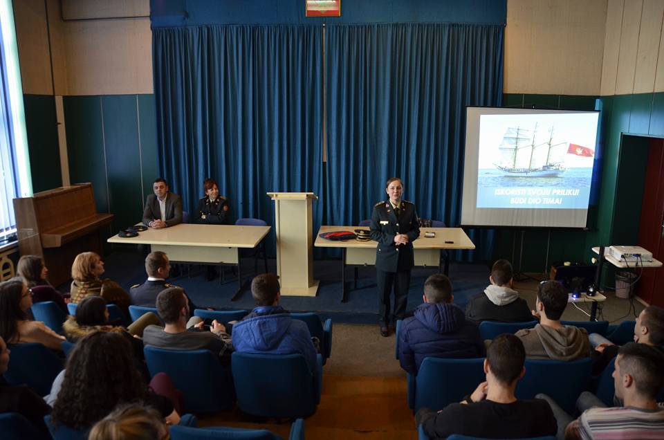 Oni su učenike upoznali sa mogućnostima školovanja na vojnim akademijama u inostranstvu i informisali ih na koji način mogu da se pridruže i budu dio Vojske Crne Gore. Učenicima je predstavljen i projekat “Ljetnji vojni kamp za mlade”, koji će i ove godine omogućiti zainteresovanim srednjoškolcima koji prođu fazu selekcije, da na 15 dana osjete pravi vojnički život.