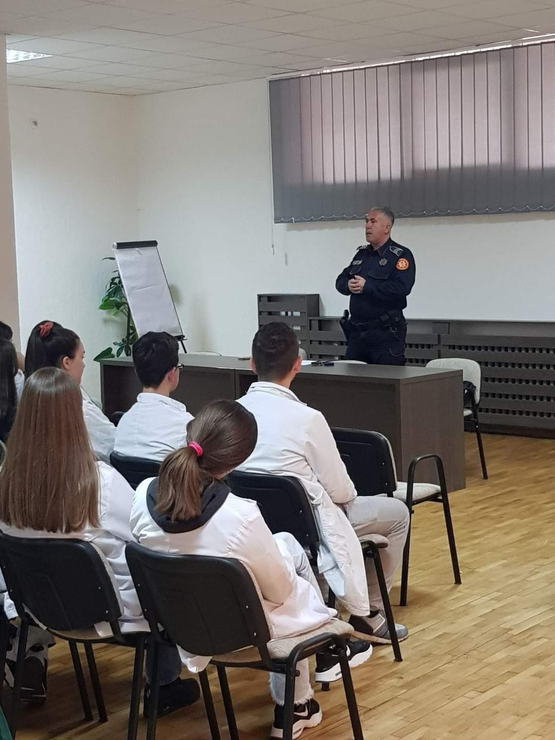 Predstavnici MUP-a Berane, Veselin Vuksanović i Mira Obradović kao i predstavnik NVO, Miki Tmušić su u srijedu 13. 4. 2022. godine održali predavanje u Srednjoj medicinskoj školi na temu: “BEZBJEDNOST U SAOBRAĆAJU”