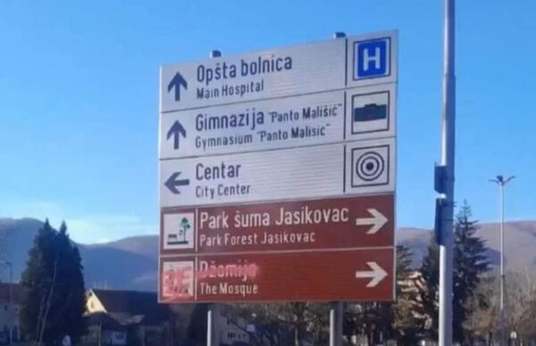 Bošnjačka stranka objavila je da je precrtan putokaz za džamiju u Beranama. Pozvali su nadležne da otkriju i kazne onoga ko je to uradio.