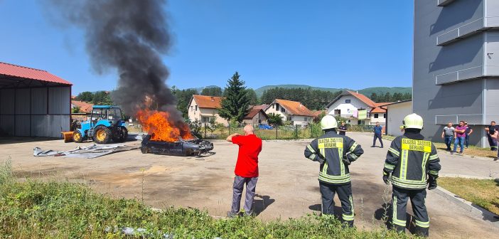 Tokom prezentacije prizutnima su demostrinani načini gašenja pozara korištenjem ćebeta od kvarcnog pijeska i druge vatrogasne opreme.