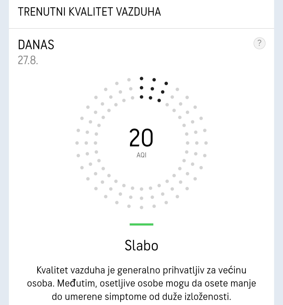 Kvalitet vazduha je generalno prihvatljiv za većinu osoba.