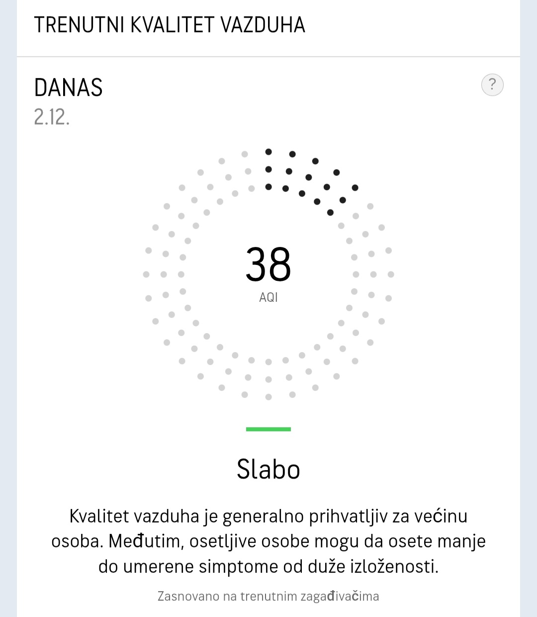 Kvalitet vazduha je generalno prihvatljiv za većinu osoba.