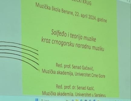 Profesori Muzičke škole Berane su juče, 22-og aprila, prisustvovali predavanju ,,Solfeđo i teorija muzike kroz crnogorsku narodnu muziku”.