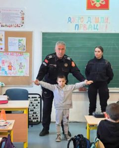 U okviru projekta ,,Budi odgovoran, poštuj saobraćajnu signalizaciju”, a u cilju unapređenja i poboljšanja sigurnosti i bezbjednosti mlađih učesnika u saobraćaju, danas je za učenike I razreda OŠ Vuk Laradžić održan čas o pravilnom ponašanju u saobraćaju.
