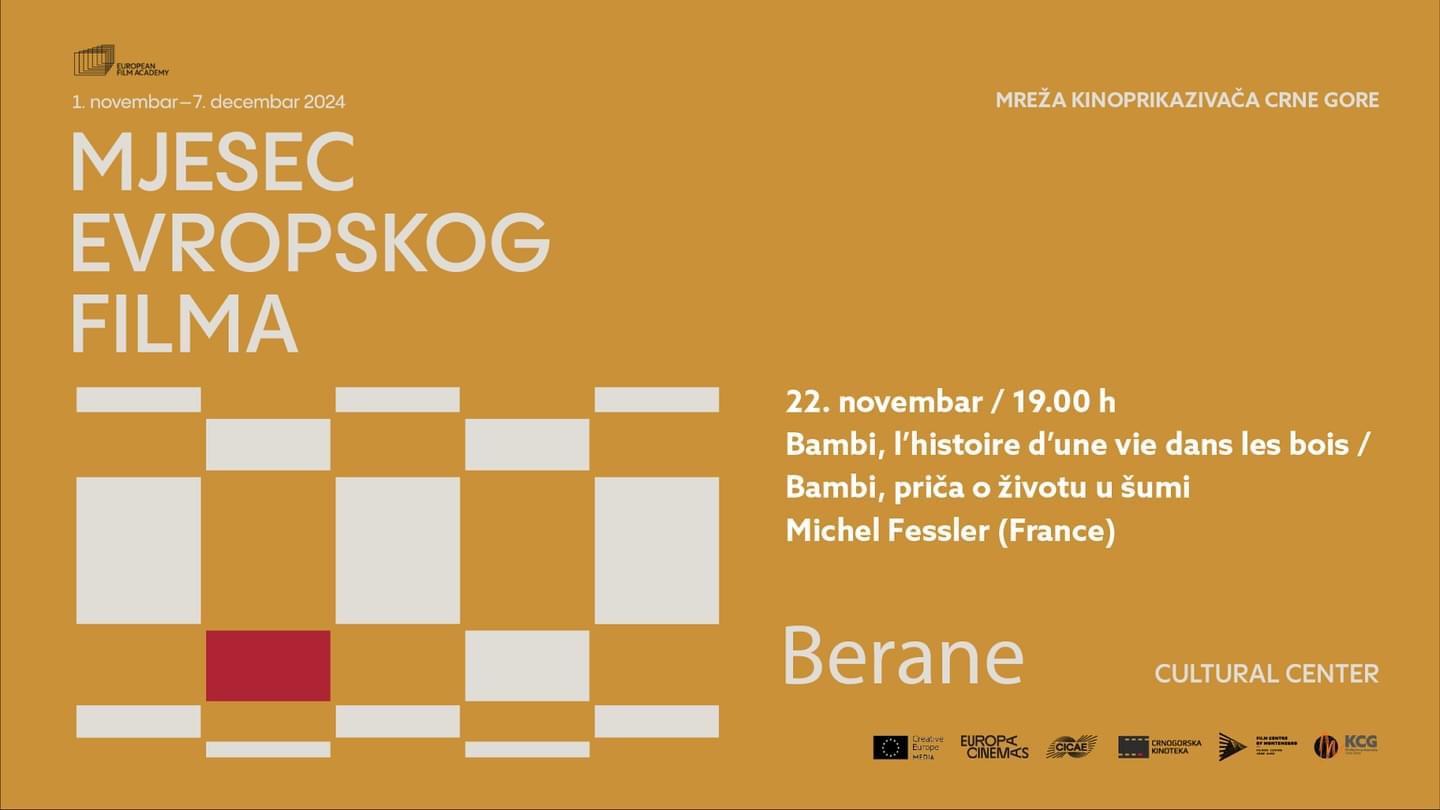 Centar za kulturu Berane poziva ljubitelje filma na projekciju filma “Bambi”, koja će se održati u petak, 22. novembra, s početkom u 19 časova.