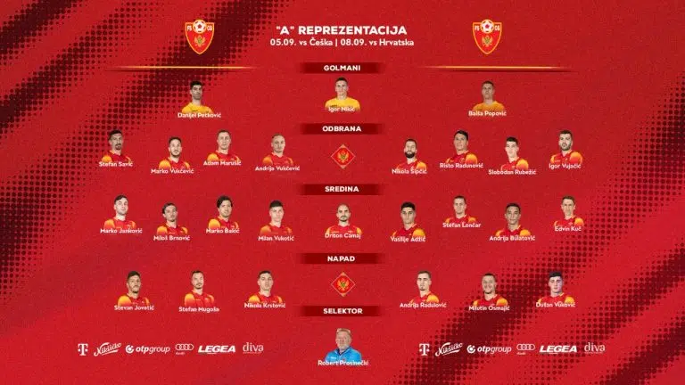 Utakmica sa Češkom igra se 5. septembra na Gradskom stadionu u Podgorici, dok će tri dana kasnije, 8. septembra, naša najbolja selekcija gostovati Hrvatskoj na Maksimiru u Zagrebu.